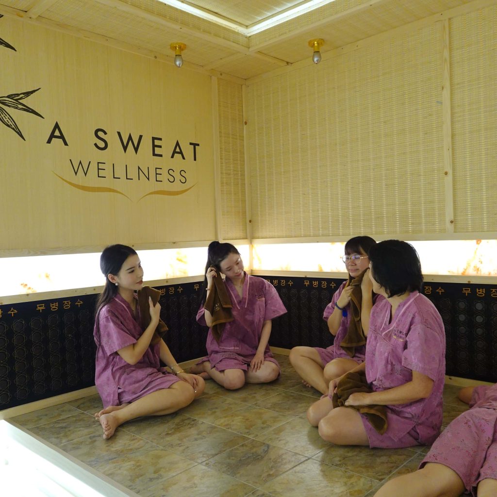 At A SWEAT WELLNESS, we combine the time-honored practice of Korean Sweat Therapy with the latest innovations in health and wellness. Our facilities are equipped with advanced materials like negative ion generators, tourmaline stones, Himalayan salt bricks, and heated ceramics to maximize the therapeutic effects.