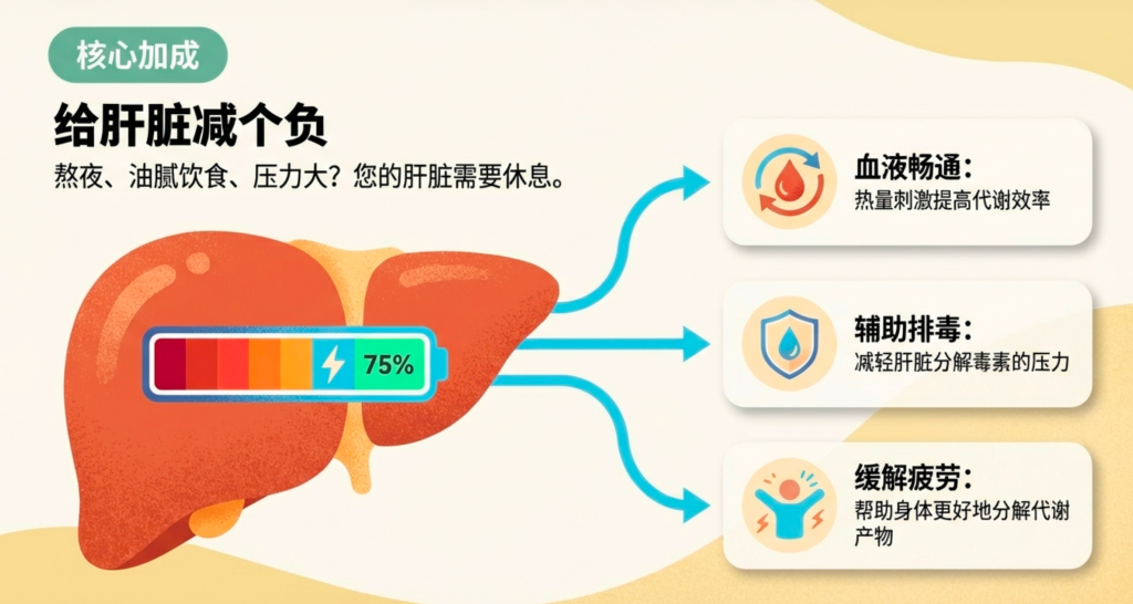 - 促进血液循环:热量刺激让血液流动更畅通,肝脏代谢效率提高