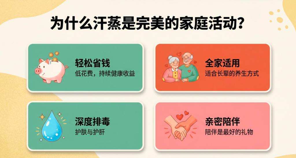 与其花大钱去餐厅或主题乐园,不如选择汗蒸,让全家人都能体验到身心健康的好处。